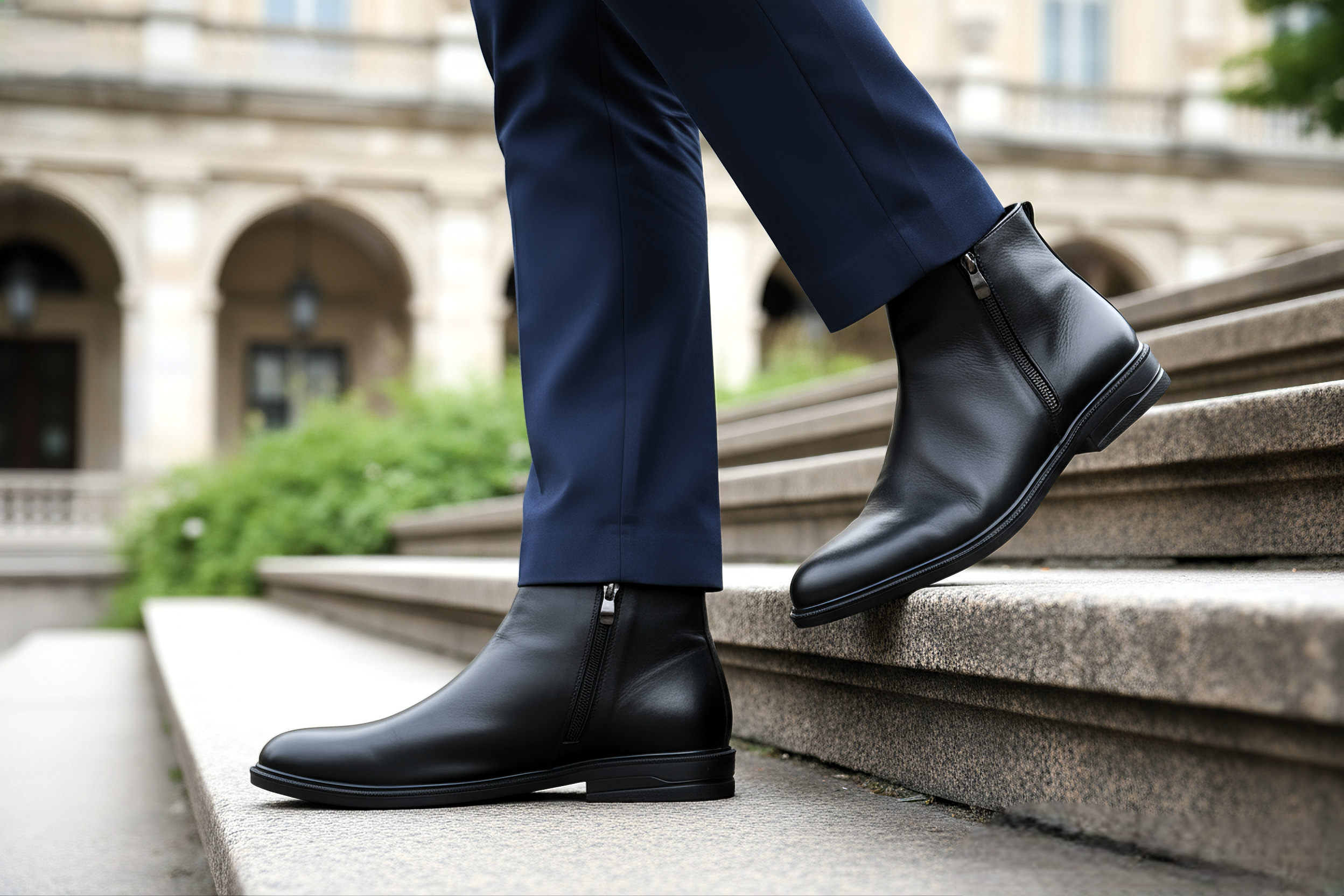 Estas botas para hombre están fabricadas en cuero negro genuino, combinando resistencia, confort y estilo sofisticado.